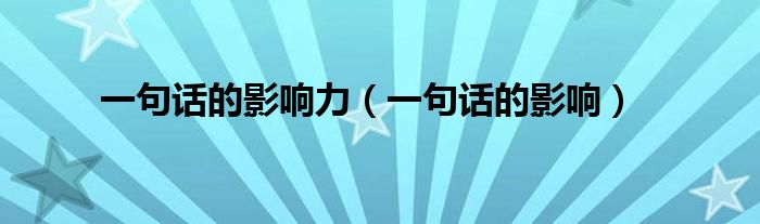 关于一句话的影响力,一句话的影响这个很多人还不知道,今天菲菲来为大家解答以上的问题,现在让我们一起来看看吧!
