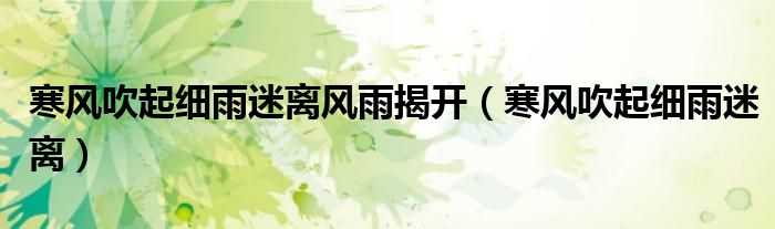 关于寒风吹起细雨迷离风雨揭开,寒风吹起细雨迷离这个很多人还不知道,今天菲菲来为大家解答以上的问题,现在让我们一起来看看吧!