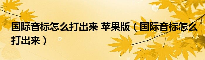 国际音标怎么打出来 苹果版(国际音标怎么打出来)