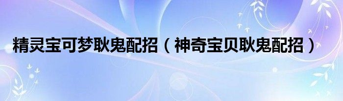 精灵宝可梦耿鬼配招(神奇宝贝耿鬼配招)