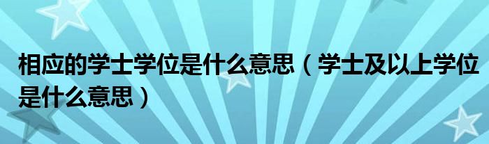 关于相应的学士学位是什么意思,学士及以上学位是什么意思这个很多人还不知道,今天菲菲来为大家解答以上的问题,现在让我们一起来看看吧!