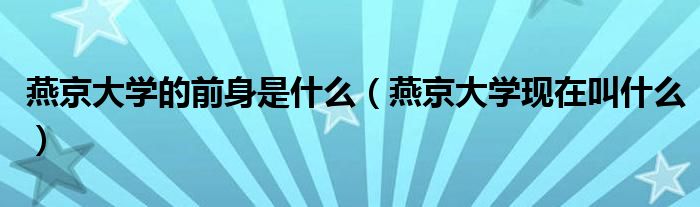 燕京大学的前身是什么(燕京大学现在叫什么)