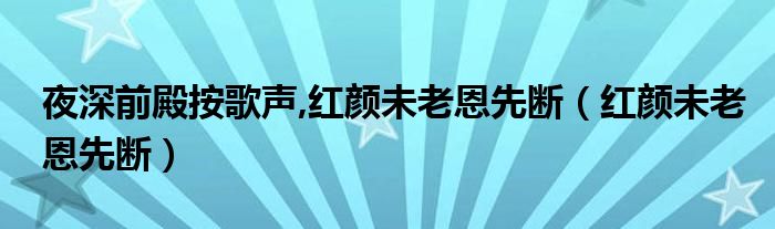 关于夜深前殿按歌声,红颜未老恩先断,红颜未老恩先断这个很多人还不知道,今天菲菲来为大家解答以上的问题,现在让我们一起来看看吧!