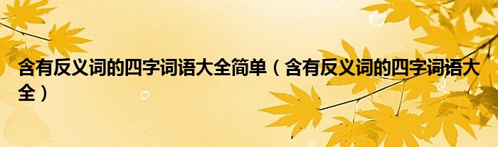 关于含有反义词的四字词语大全简单,含有反义词的四字词语大全这个很多人还不知道,今天菲菲来为大家解答以上的问题,现在让我们一起来看看吧!