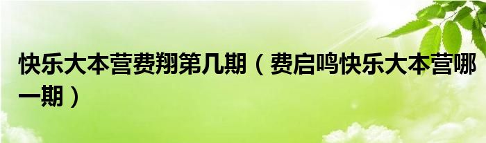 快乐大本营费翔第几期(费启鸣快乐大本营哪一期)