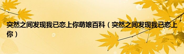 突然之间发现我已恋上你萌娘百科(突然之间发现我已恋上你)