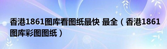 香港1861图库看图纸最快最全(香港1861图库彩图图纸)