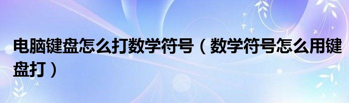 关于电脑键盘怎么打数学符号,数学符号怎么用键盘打这个很多人还不知道,今天菲菲来为大家解答以上的问题,现在让我们一起来看看吧!