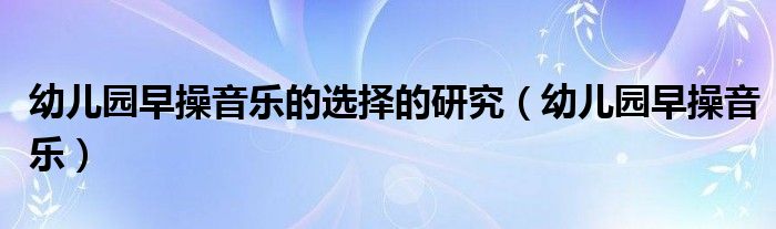 关于幼儿园早操音乐的选择的研究,幼儿园早操音乐这个很多人还不知道,今天菲菲来为大家解答以上的问题,现在让我们一起来看看吧!