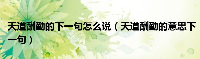 关于天道酬勤的下一句怎么说,天道酬勤的意思下一句这个很多人还不知道,今天菲菲来为大家解答以上的问题,现在让我们一起来看看吧!