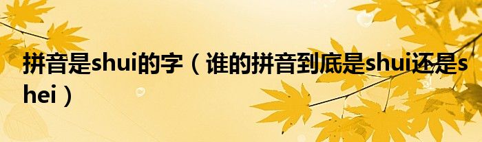 关于拼音是shui的字,谁的拼音到底是shui还是shei这个很多人还不知道,今天菲菲来为大家解答以上的问题,现在让我们一起来看看吧!