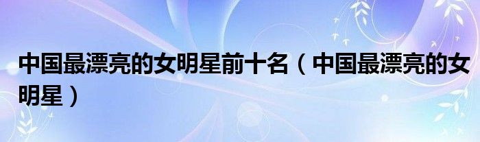 关于中国最漂亮的女明星前十名,中国最漂亮的女明星这个很多人还不知道,今天菲菲来为大家解答以上的问题,现在让我们一起来看看吧!